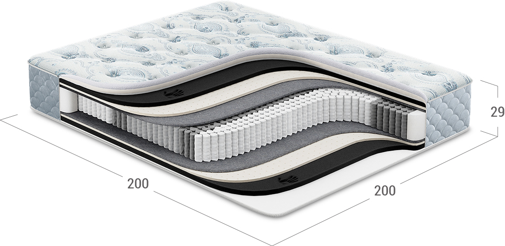 Матрас, в основу которого положен независимый пружинный блок (НПБ). Обратите внимание: чем большее количество пружин приходится на спальное место, тем точнее оказывается поддержка спины, а значит, более комфортным становится матрас и Ваш сон.