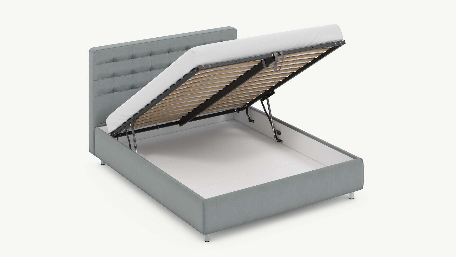 • Скрытая под основанием вместительная емкость без внутренних перегородок позволяет использовать всю площадь подкроватного пространства для хранения вещей.