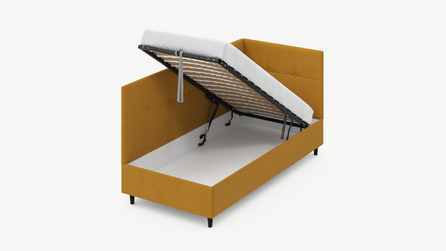 • Скрытая под основанием вместительная емкость без внутренних перегородок позволяет использовать всю площадь подкроватного пространства для хранения вещей.